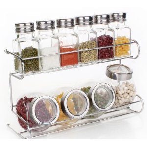 調味料を同じ形、同じデザインのガラス瓶に詰め替えます。